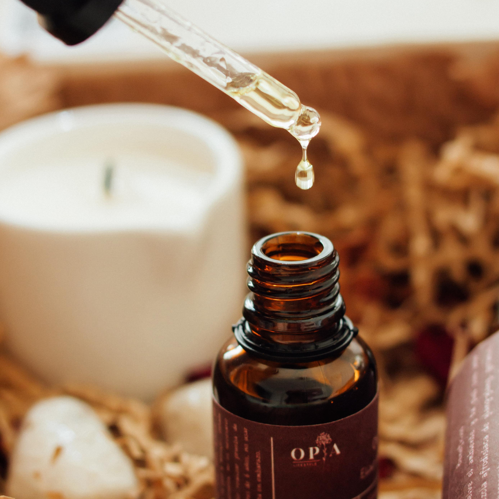 Oleato elixir de pasion: aceites vegetales de coco fraccionado, almendras dulces, girasol y rosa mosqueta, enriquecidos con vitamina E para nutrir y proteger la piel. Su mezcla de aceites esenciales de ylang-ylang, geranio, naranja, bergamota e incienso hidrata profundamente, estimula los sentidos y despierta la sensualidad.